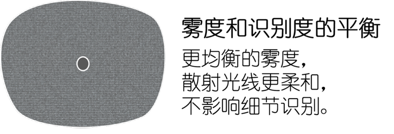 利用高能量的激光脉冲在材料内部聚焦,产生微米量级大小的汽化爆裂点,整个镜片内部覆盖20000+个激光内雕散射点。散射方向效果更精准,光线更柔和,雾度更均匀。
